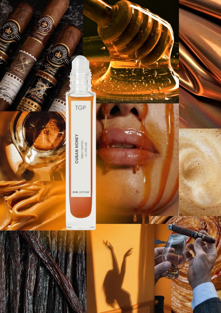 Experience the warm charm of Cuban Honey, a seductively sweet scent that transports you to the sunny streets of Havana. Rich, golden honey melts with creamy tonka bean and a hint of tropical rum, while warm tobacco leaves and velvety vanilla add depth. For lovers of bold, addictive scents with an exotic edge.